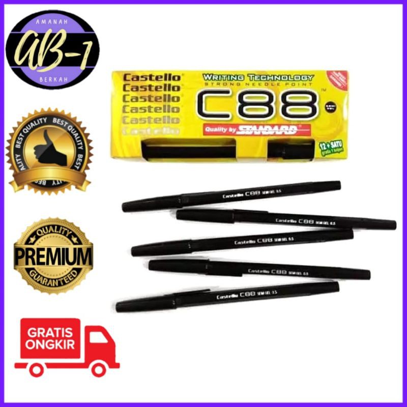 13 PCS PULPEN / BOLPOIN HITAM STANDARD CASTELLO C88