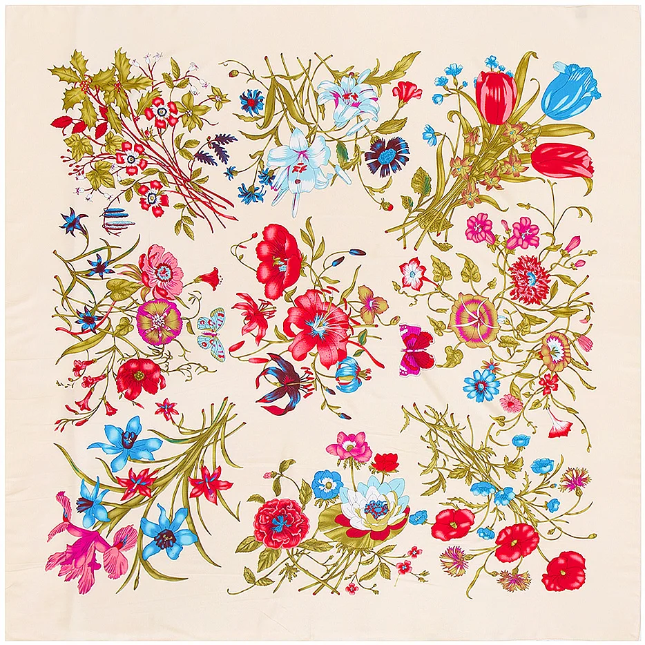 130*130 см новый бренд женский саржевый шелковый шарф с цветочным принтом шарф платок тюрбан повязка на голову большой хиджаб квадратные шарфы...