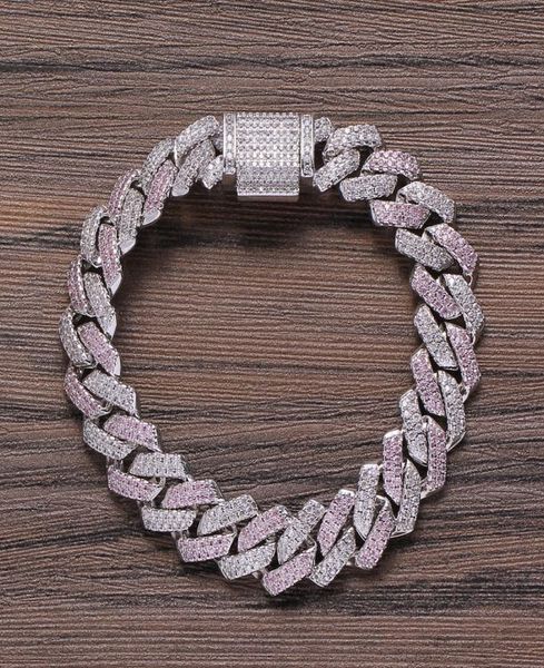 13mm men zircon curb cuban link thick heavy copper material gold color bracelet pink diamond bracelets9556785, Golden;silver