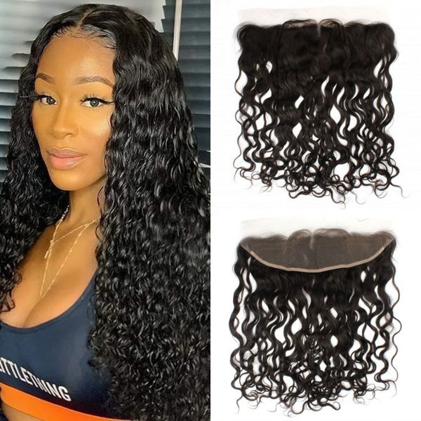 13x4 lace frontal brazilian water wave human hair ear to ear pre plucked frontal closure with baby hair, Black;brown