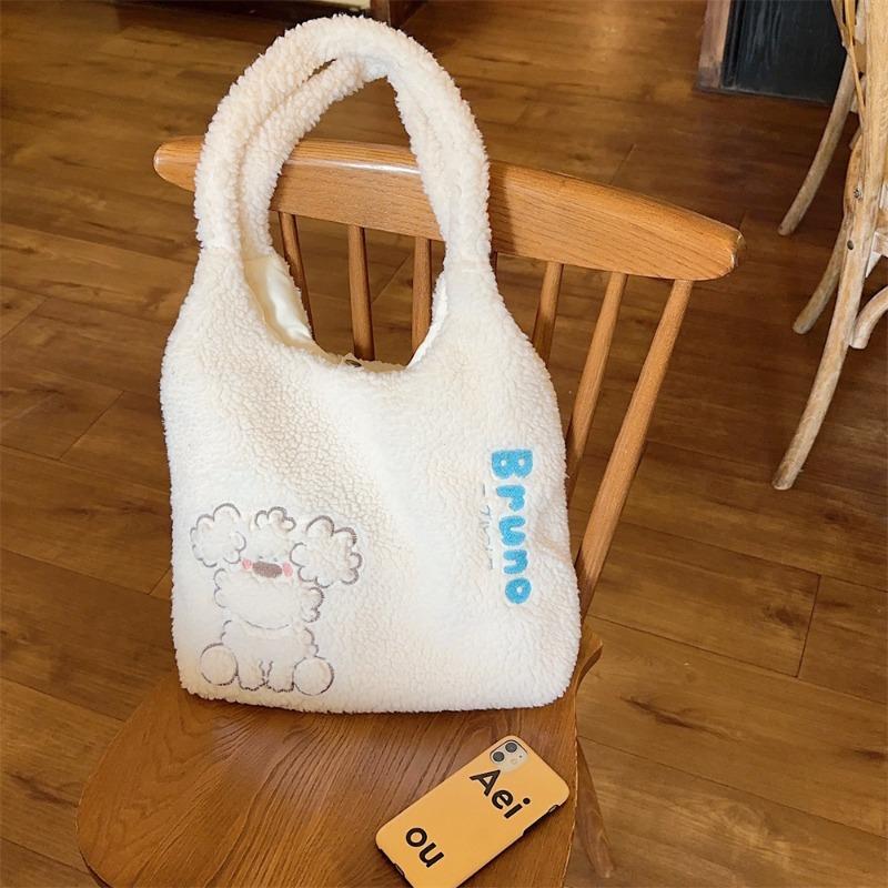 14 осень и зима новая плюшевая сумка женская мультяшная вышитая сумка-жилет большая вместимость пушистая студенческая сумка для занятий