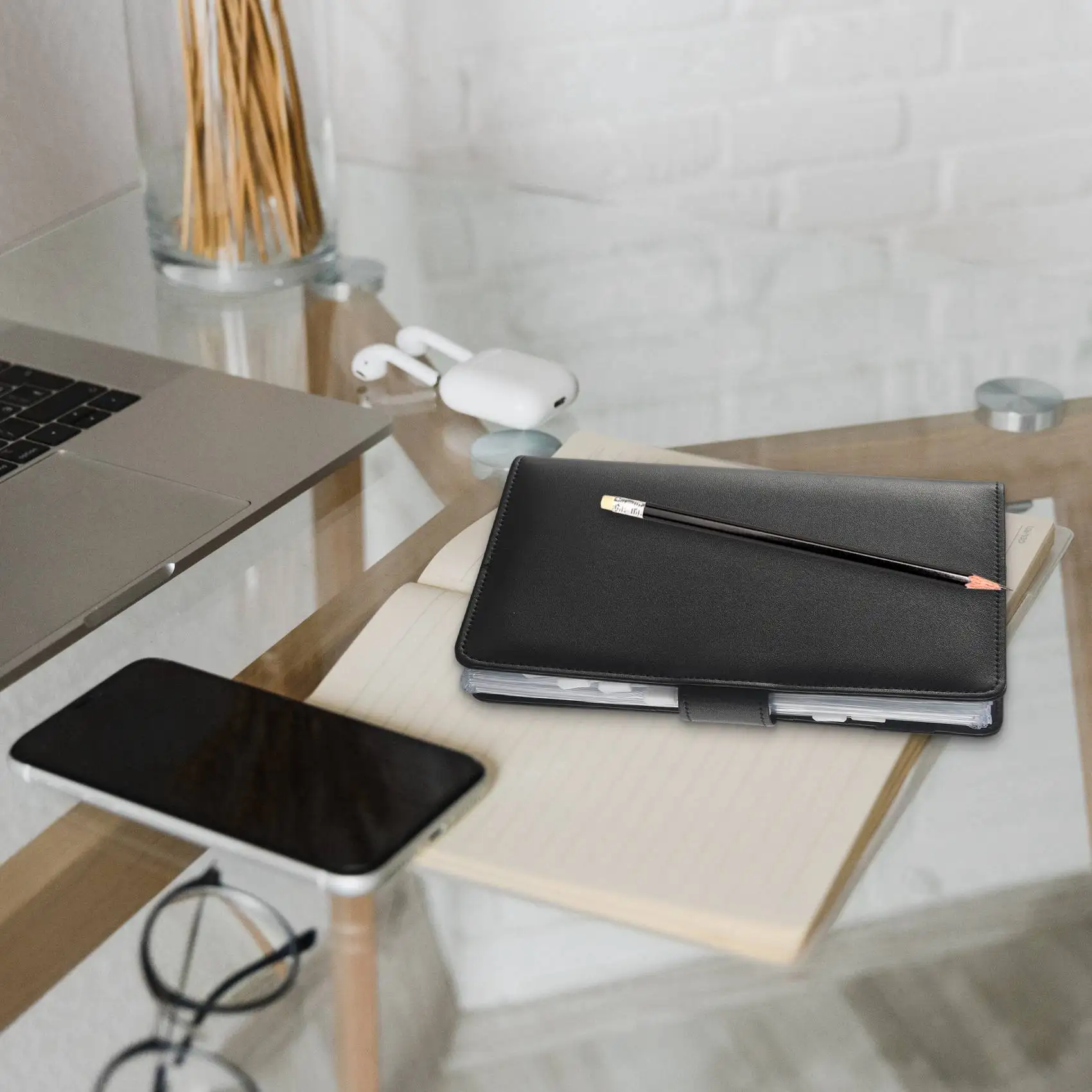 14 сумок A6 с кожаным чехлом, 6 колец бюджет с наличными, (черный)