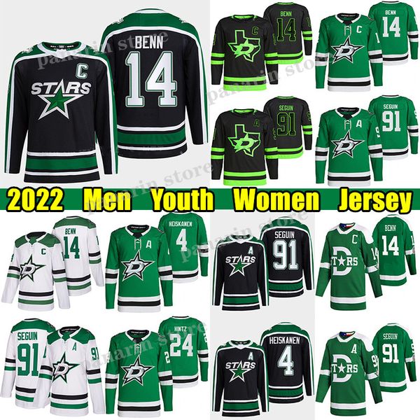 #14 jamie benn reverse retro hockey jersey #91 tyler seguin stars#4 miro heiskanen joe pavelski esa lindell roope hintz modano dino ciccarel, Black;red