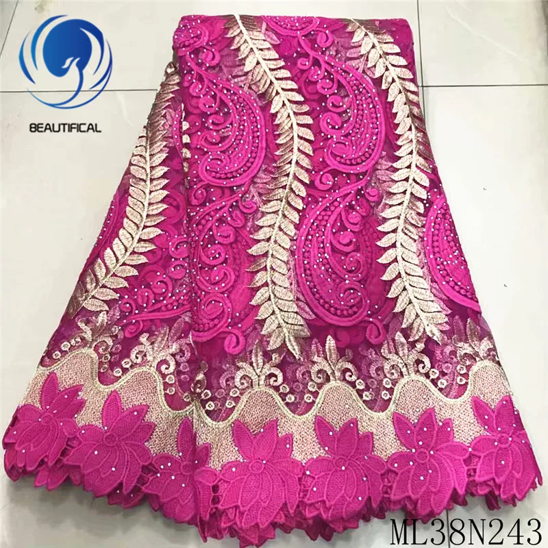 Красивая кружевная вышивка, нигерийское французское кружево с камнями и гипюровым кружевом, украшение для вечернего платья, Кружевное фран...