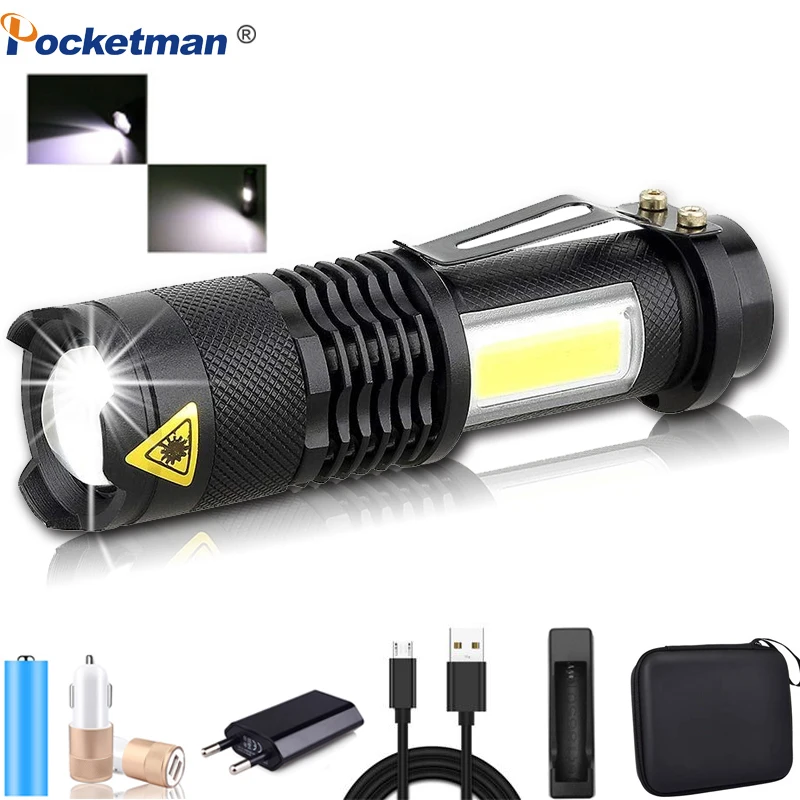 14500 лм светодиодный ффонарь Q5 COB, супер яркий портативный водонепроницаемый светодиодный фонарик, масштабируемый фонарик, фонарик с питание...