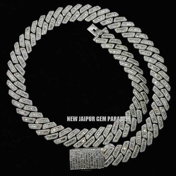 14mm cuban link chain | vvs quality baguette moissanite diamond | heavy 925 sterling silver | white gold plated | gift for men