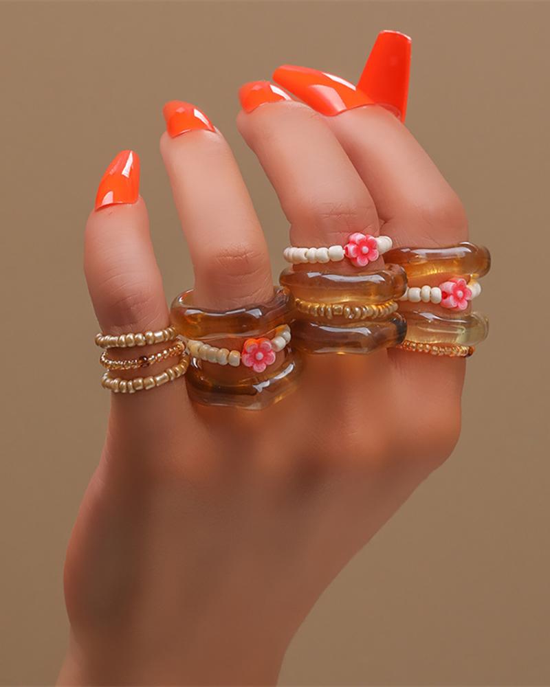 14pcs Floral Pattern Beaded Bohemian Rings Set, Style3