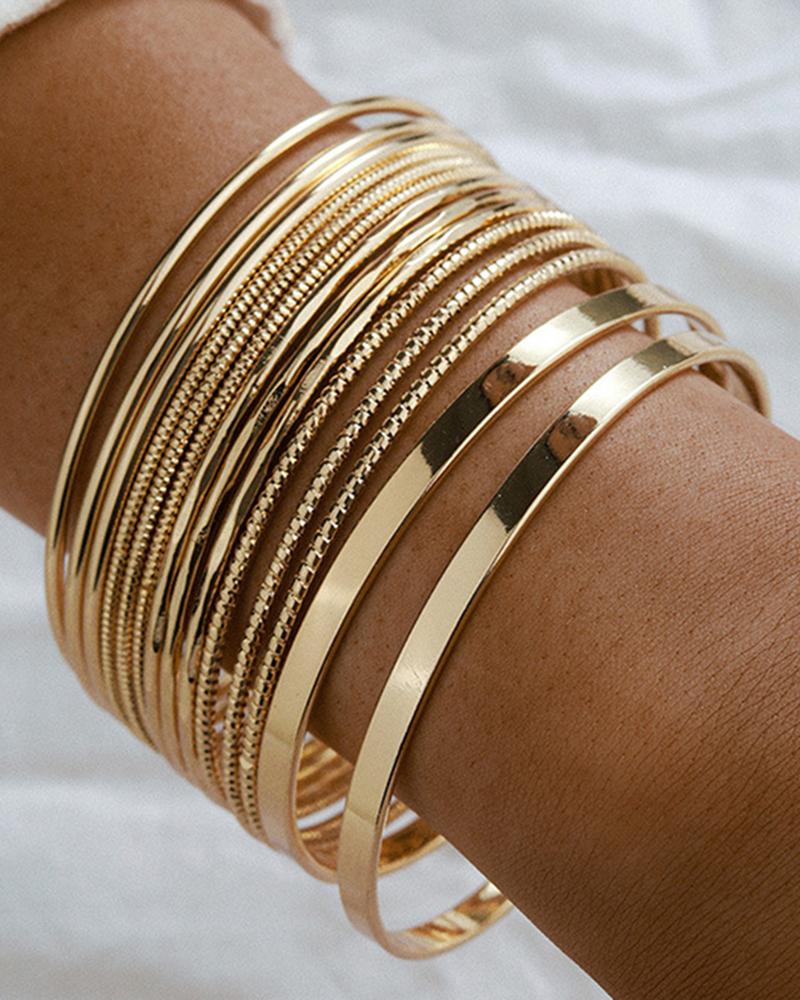 14pcs Punk Chunky Stackable Textured Multi Bangle Bracelets Set, Gold