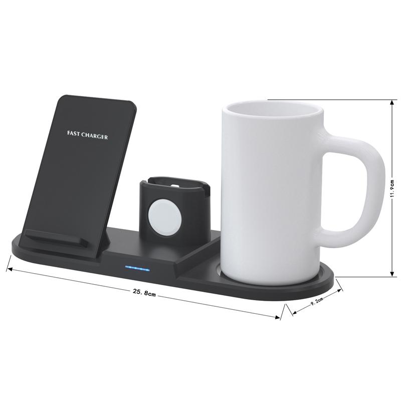 15 Вт 4 в 1 быстрая беспроводная зарядная станция для Iphone12 11 Pro зарядная док-станция для держателя Iwatch Airpods Pro с термостатической чашкой as picture чёрный