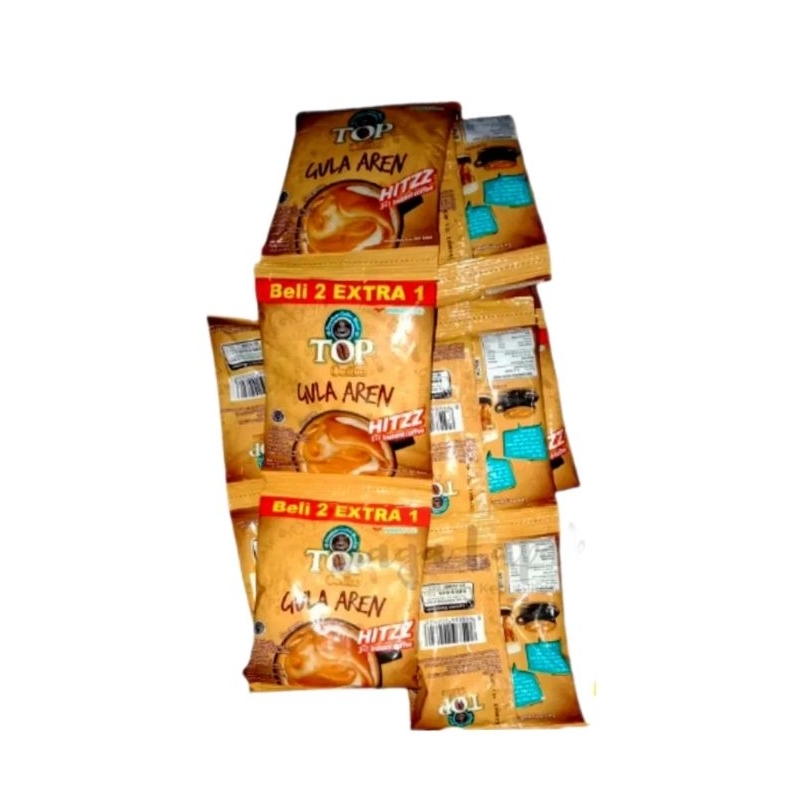 Top kopi gula aren kemasan 22 gram renteng.Cocok untuk di minum di segala kondisi cuaca dan mudah di sajikan.