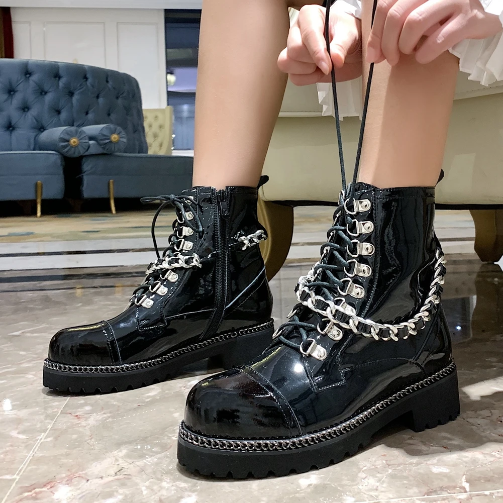 Doratasia 2020 Big Size 43 Fashion Brand Design Patent Leather Winter Women Shoes Chains Motorcycles Ankle Boots