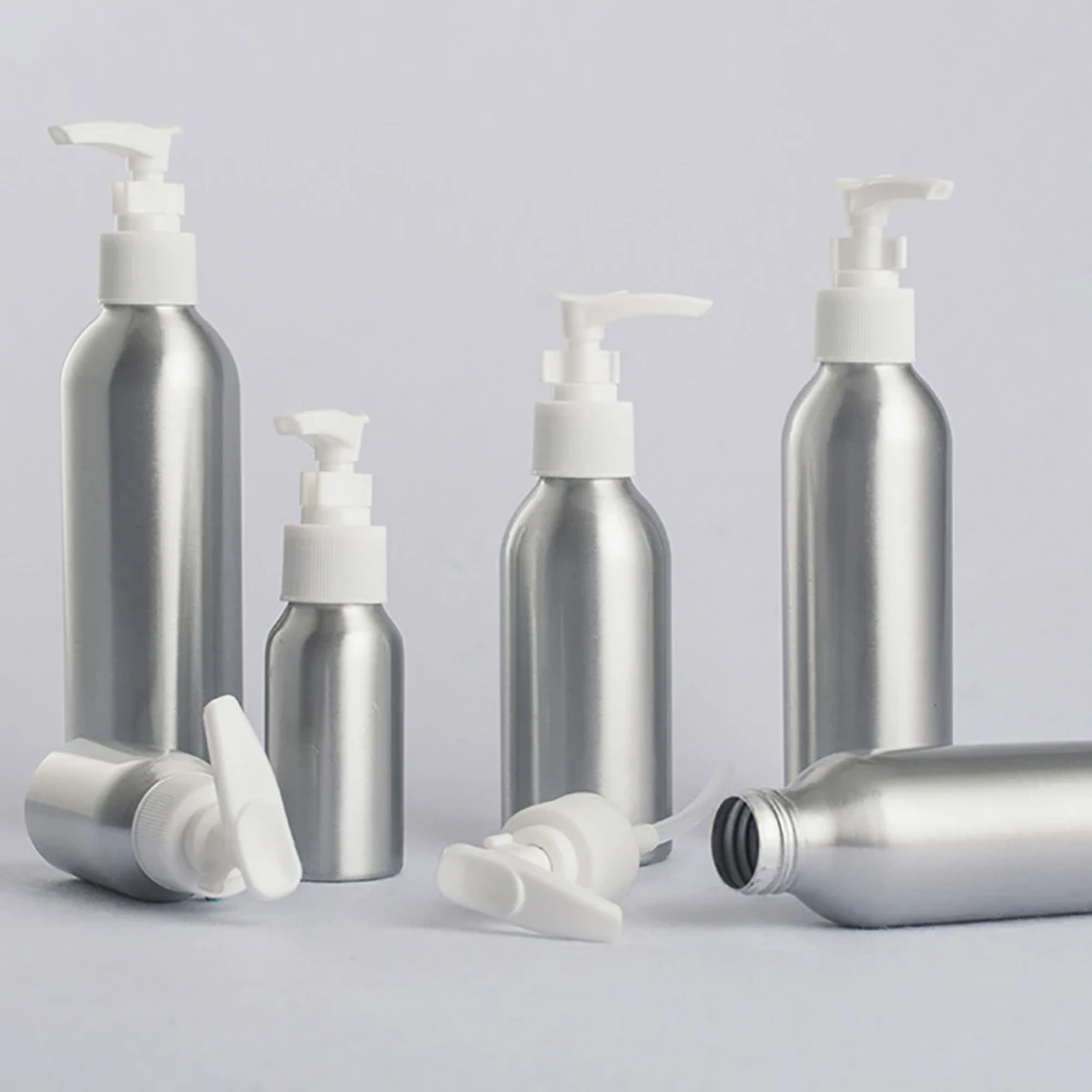 150 мл круглый пустой алюминиевый серебристый металлический флакон с белым насосом для лосьона