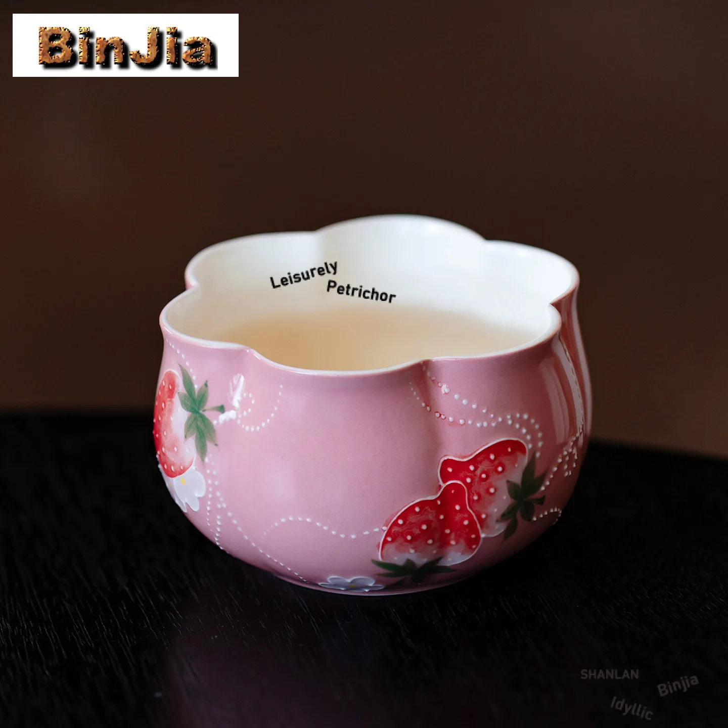 150 мл ручная роспись чайная чашка с лепестками клубники, древняя чаша для чая, чашка для чайной дегустации, чашка для медитации, чашки Chazhan Master, посуда для напитков