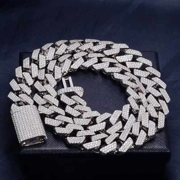 15mm 3 rows moissanite cuban chain necklace hip hop bling iced out vvs moissanite ice jewellery cuban link chains, Silver