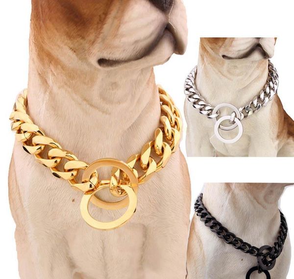 15mm dogs training choke chain collars for large dogs pitbull bulldog strong silver gold stainless steel jllslf home003