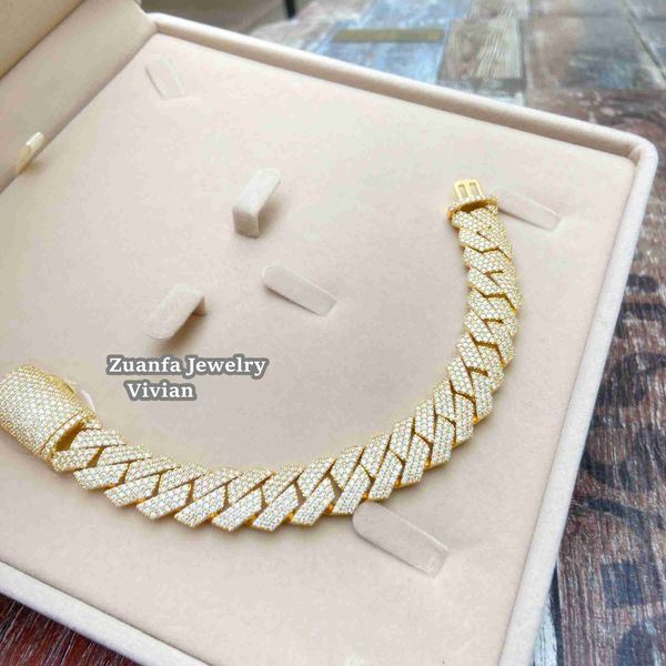 15mm width men necklace pass tester diamond sterling silver 925 vvs moissanite gold plated cuban link chain bracelet