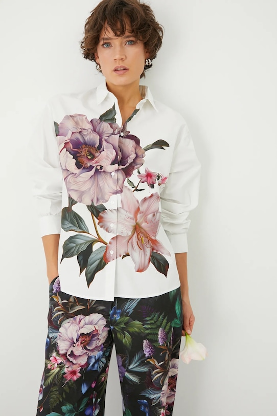 Shirt Female Long Sleeve 2022 Spring New Korean Loose Print V-neck Chiffon Top Foreign Style Ribbon White Shirt