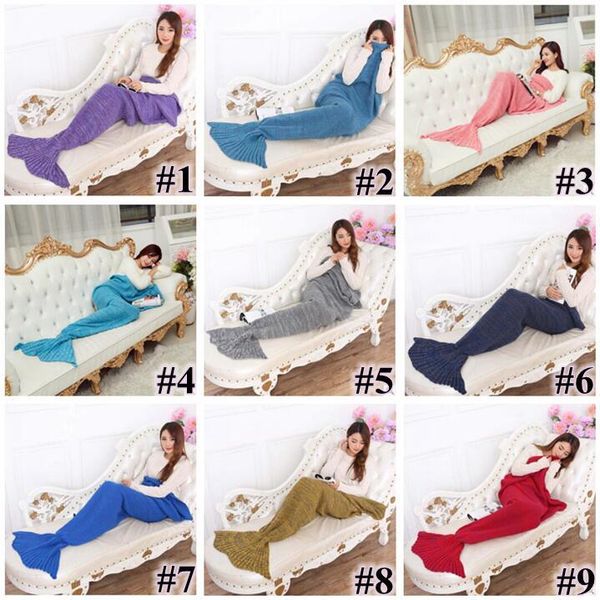 16 цветов 140 * 70см дети трикотажная русалка пледы handmade mermaid tail одеяло крючком одеяло throw кровать wrap спальный мешок