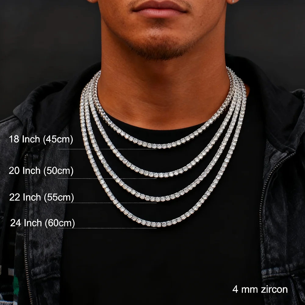 YLMyself из стерлингового серебра 925 пробы, теннисная цепочка, ожерелье 2 мм/3 мм/4 мм, блестящий циркон, 16-24 дюйма, хип-хоп, ювелирные изделия, настоящее серебро