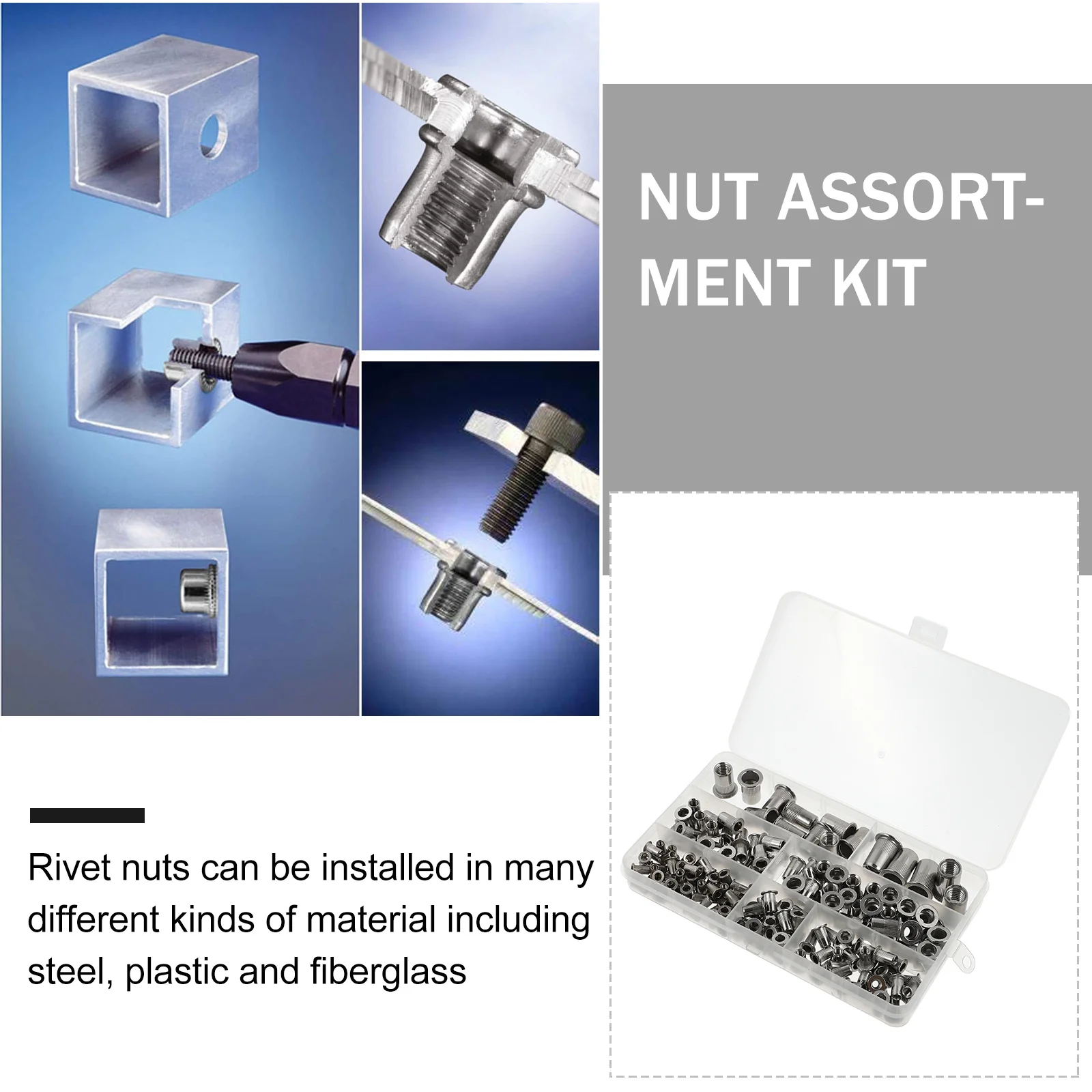 165Pcs Stainless Steel Rivet Nut Kit Multipurpose Durable Threaded Inserts Flat Head Nuts Repair Fasteners Rivet Nut Set