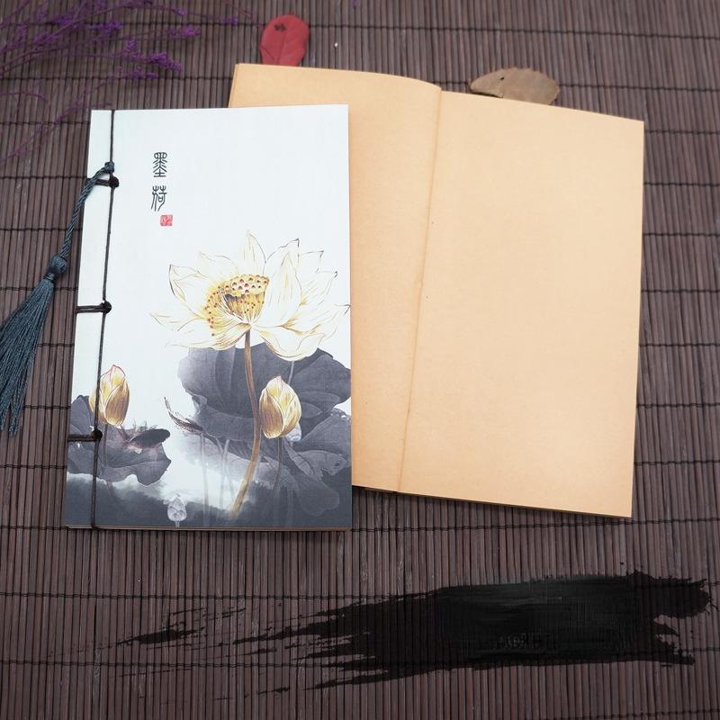 17*11 см винтажный блокнот в китайском стиле Lotus с кисточкой, пустой крафт-портативный мини-блокнот для рукоделия 01
