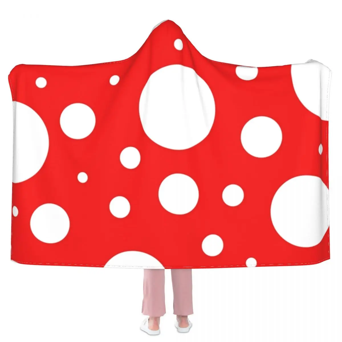 Красно-белое одеяло в горошек Kusama Yayoi, вдохновленное Модное теплое покрывало с капюшоном, флисовое мягкое одеяло для стула