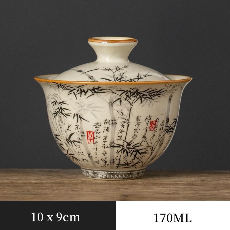 170 мл черный бамбуковый фарфоровый набор для приготовления чая, супница, чайная посуда, чашка, китайская желтая керамическая открывающаяся пиала для чая, чайная церемония