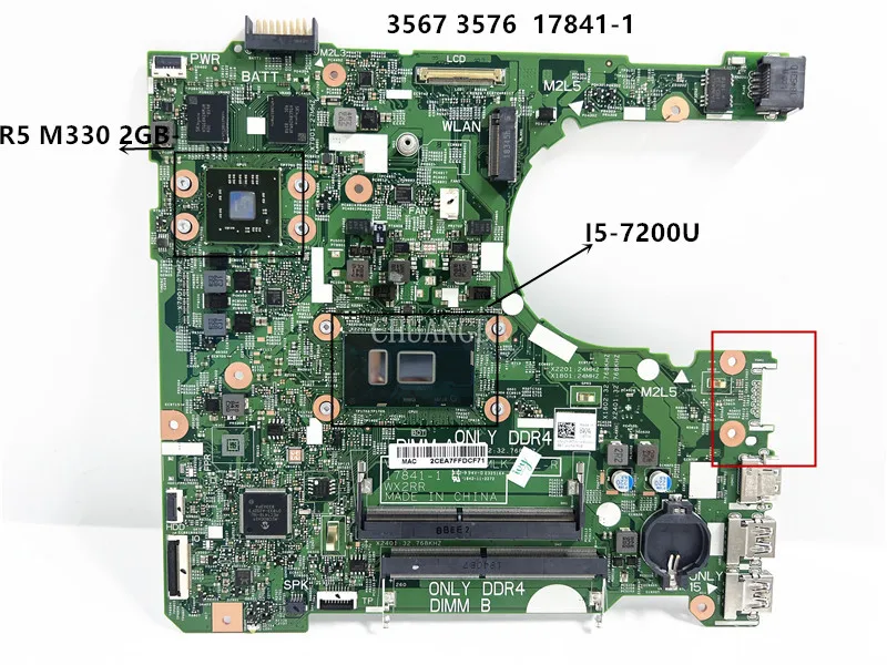17841-1 CN-0YJRTW R5 M330 2GB-GPU CN-0P5CRK 0YHR для DELL 3478 3578 материнская плата для ноутбука с процессором SR342 I5-7200U 100% Полная работа