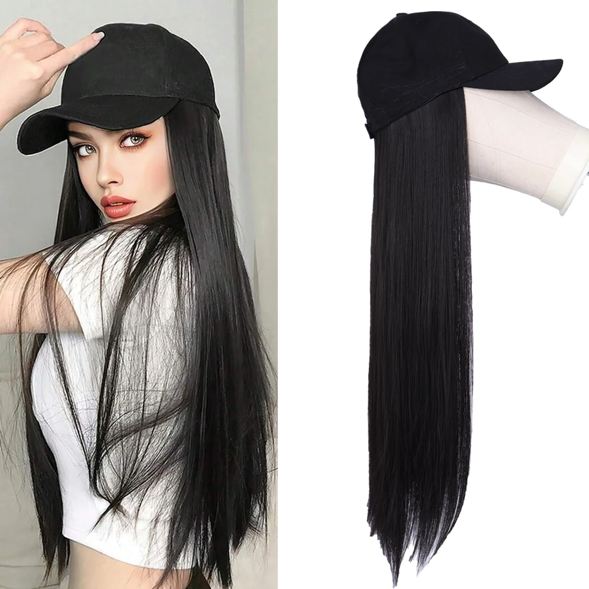 18-дюймовая длинная прямая шапка из синтетических волос, регулируемая бейсбольная кепка с волосами для наращивания волос, прикрепленный натуральный парик для женщин