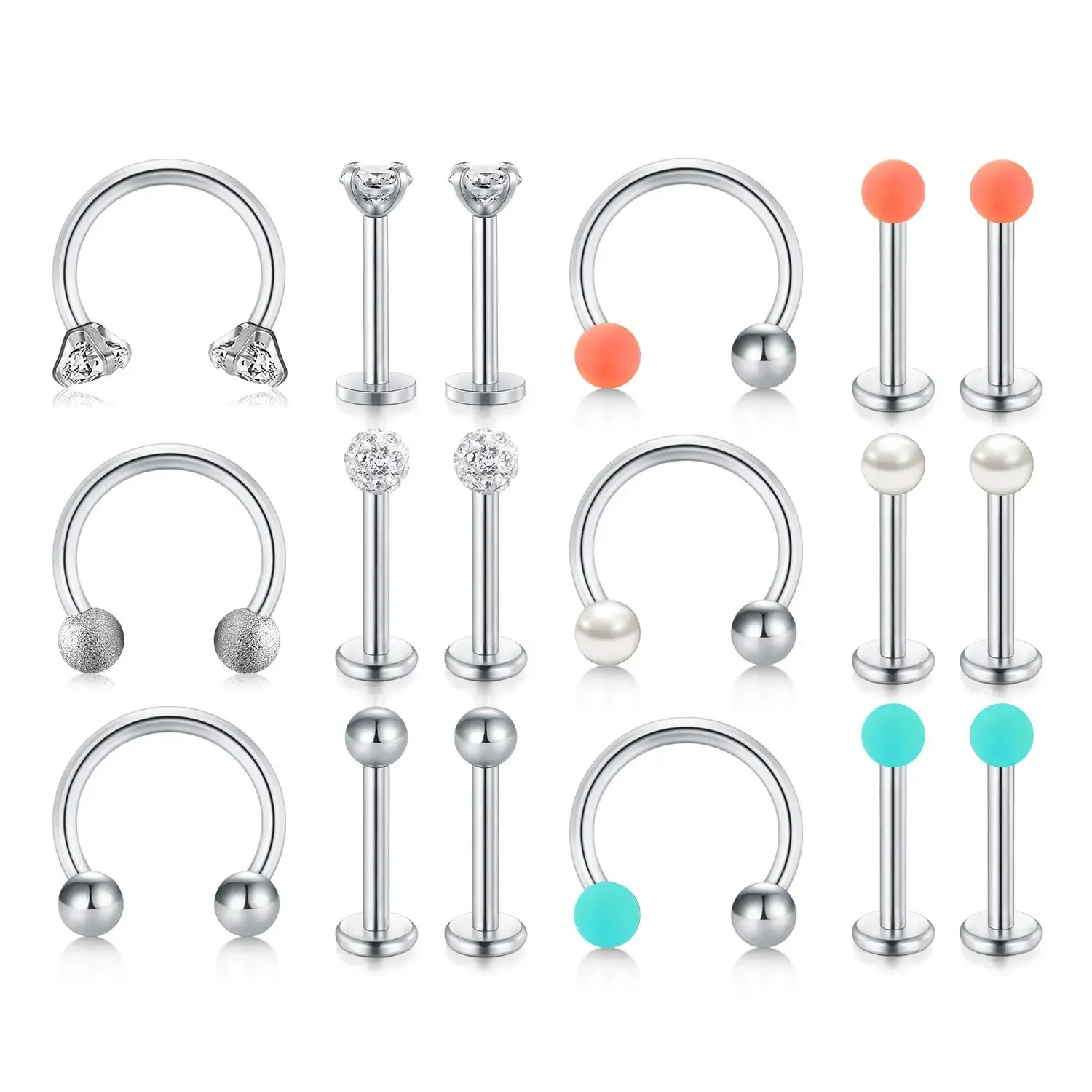 18 шт., серебряные серьги для губ, 6 мм, 8 мм, 10 мм