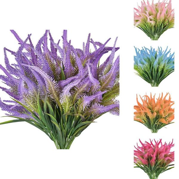 decorative flowers & wreaths artificial fake flowers, 6 bundles faux plastic greenery foliage plants shrubs for garden, wedding, outside