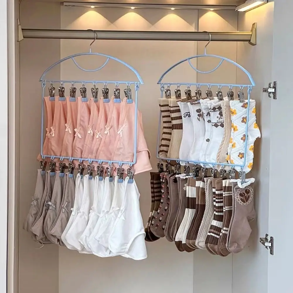 18 Clips Socks Drying Rack Stainless Steel Large Capacity Multi-clip Sock Drying Hanger Rust-proof Space Saving