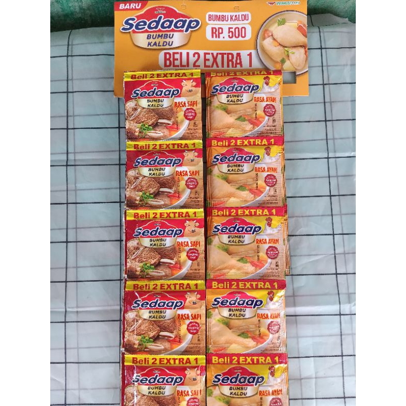 bumbu kaldu sedap rencengan isi 18 sachet, rasa ready ayam dan sapi