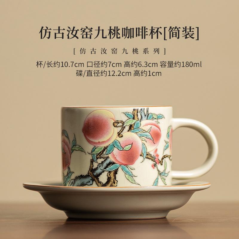 180 мл античная кофейная чашка Ru Kiln Nine Peach, эксклюзивная женская кружка для послеобеденного чая, офисная кружка, чашка с блюдцем, чашка для капучино и латте