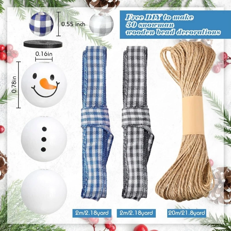 180 шт., рождественские деревянные бусины, рождественские бусины для поделок, пледы с изображением буйволов, деревянные бусины,