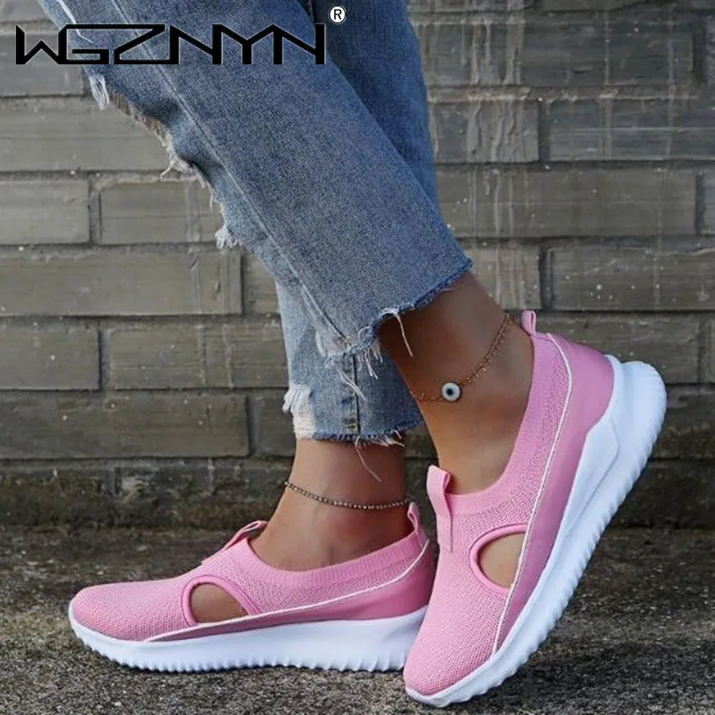 Женские вязаные кроссовки, без шнуровки, удобная обувь для отдыха, плоская Вулканизированная подошва