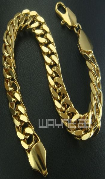 18k 18ct gold filled gf mens 10mm width 22cm length cool braclet b1197172448, Black