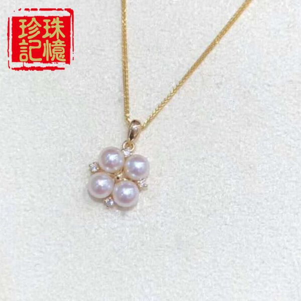 18k gold quality clover pendant with diy lucky grass natural pearl necklace, Black