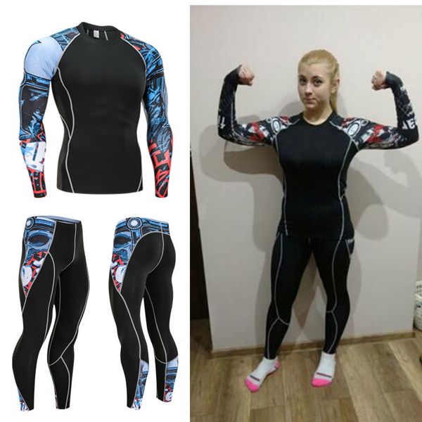 19 suit women sports women's running suit fleece thermal underwear compression tights shirt +training leggings 2 piece kit lj201012, Gray