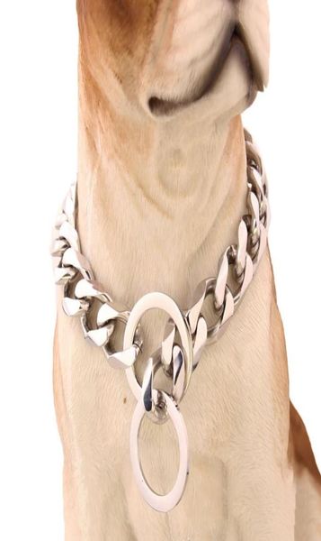 19mm 1234 inch silver tone double curb cuban pet link stainless steel dog chain collar whole pet necklaces8228290
