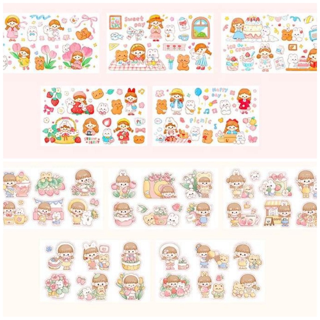 1LEMBAR REPACK RANDOM STIKER WASHI GAMBAR KARTUN CUTE GIRL
