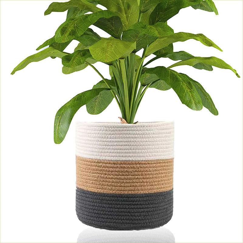 1PC Cotton Rope Foldable Plant Pot Cover Flower Pot Storage Basket Home Decoration Toys Sundry Woven 25x25cm