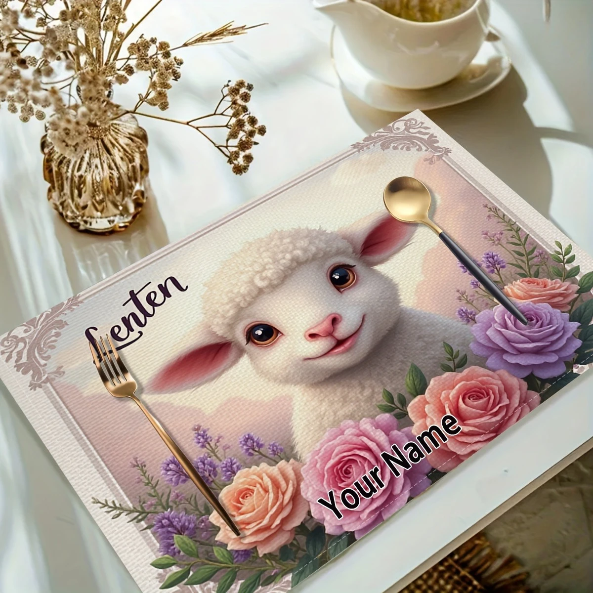 1PC Custom Lamb & Floral Place Mats Set with Personalized Name/Text - Pastel Pink & Purple Spring Design,Table Decor for Easter