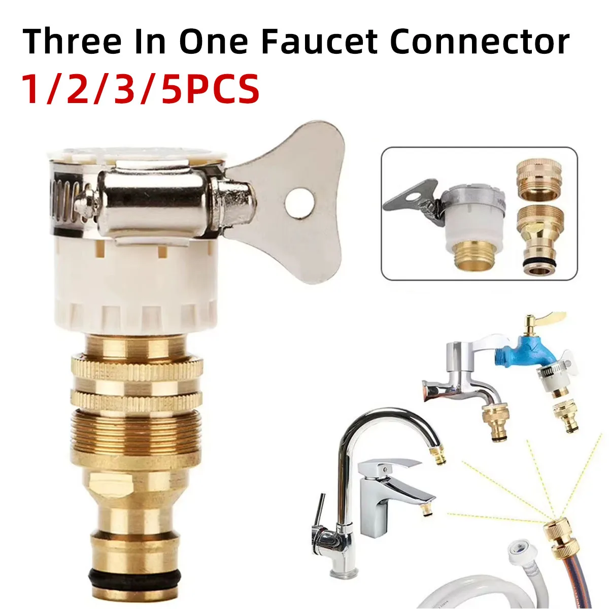 1PC Three In One Metal Faucet Connector Water Pipe Quick Connection Accessory Corrosion-Resistant Multifunctional Conversion Kit