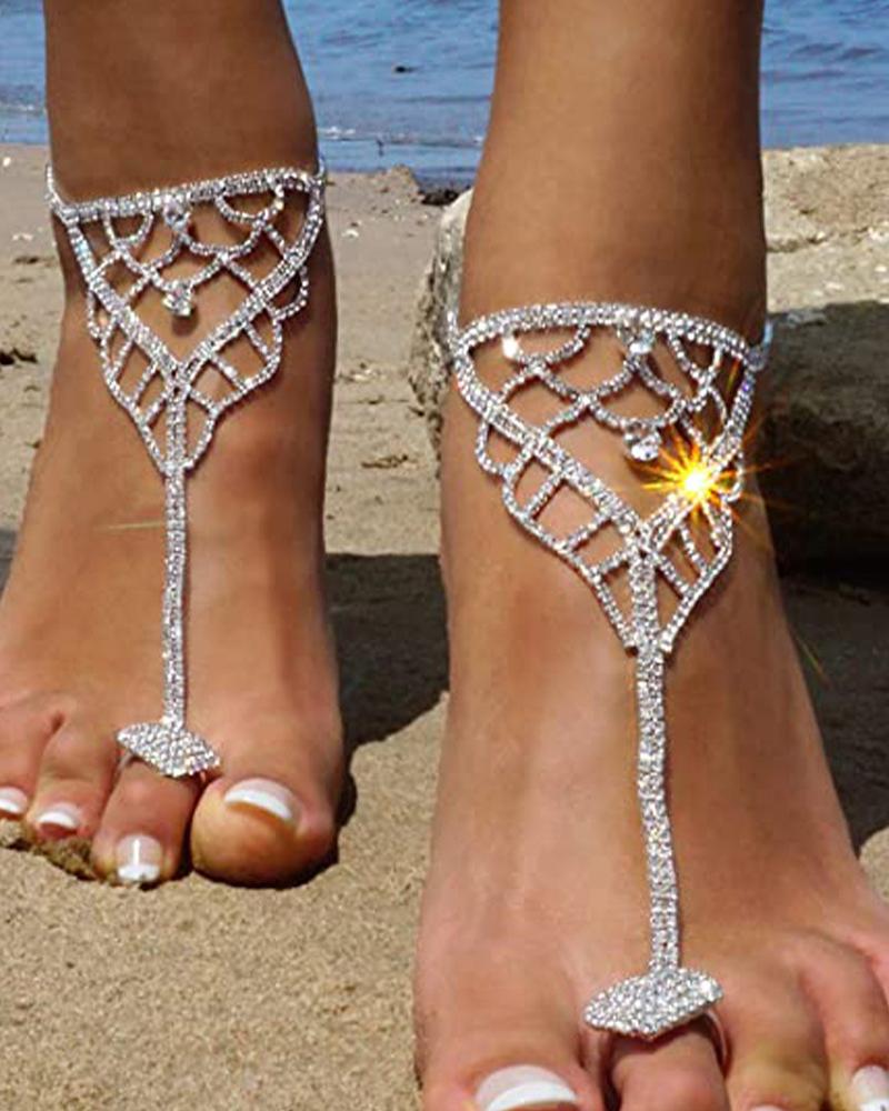 1PCS Allover Rhinestone Cutout Mittens Anklet, Silver