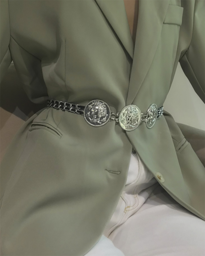 1PCS Ancient Figure Coin Pattern Waist Chain, Silver