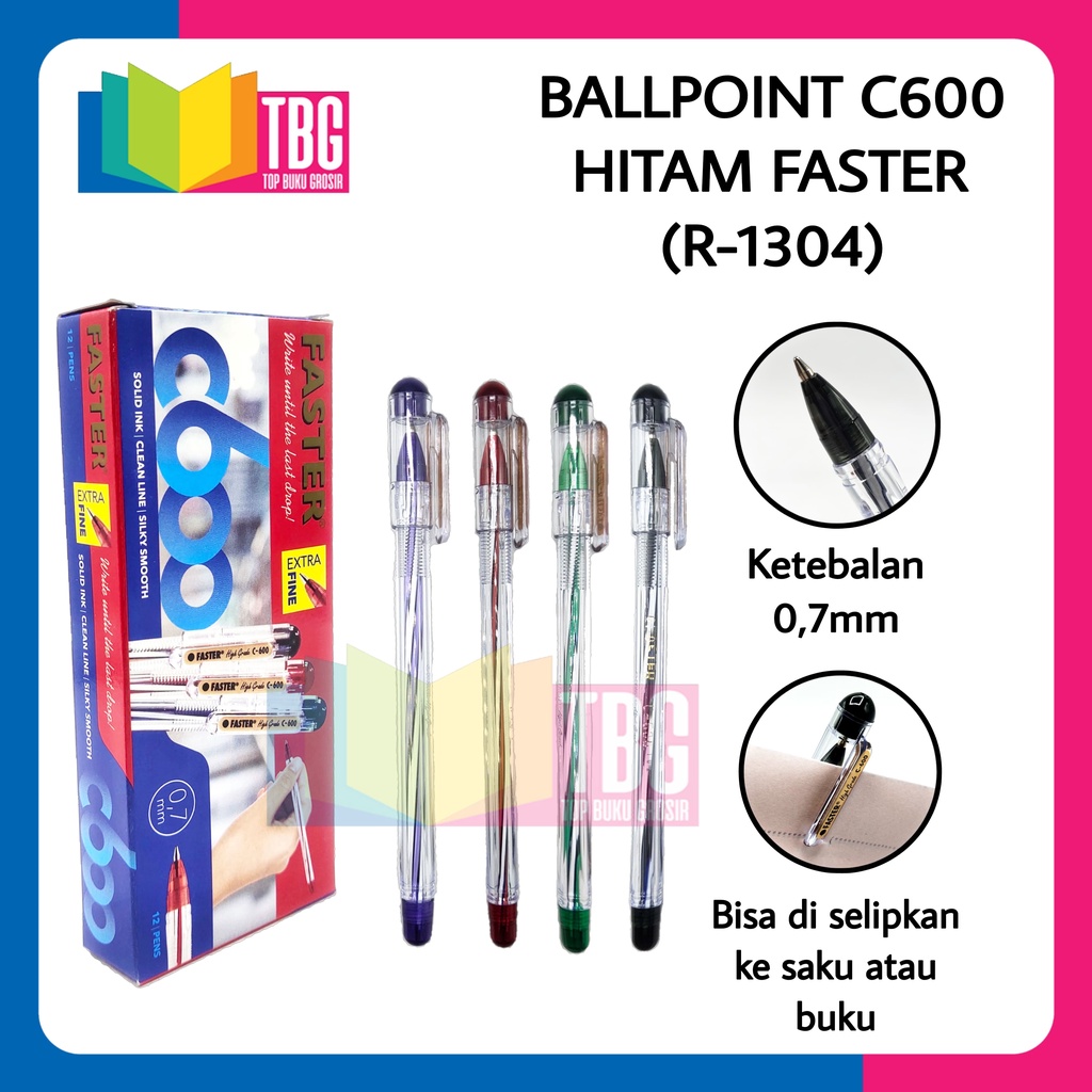 1PCS BOLPEN C600 HITAM FASTER/PULPEN 0.7MM FASTER//BALLPOINT ULIR HITAM FASTER (R-1304)