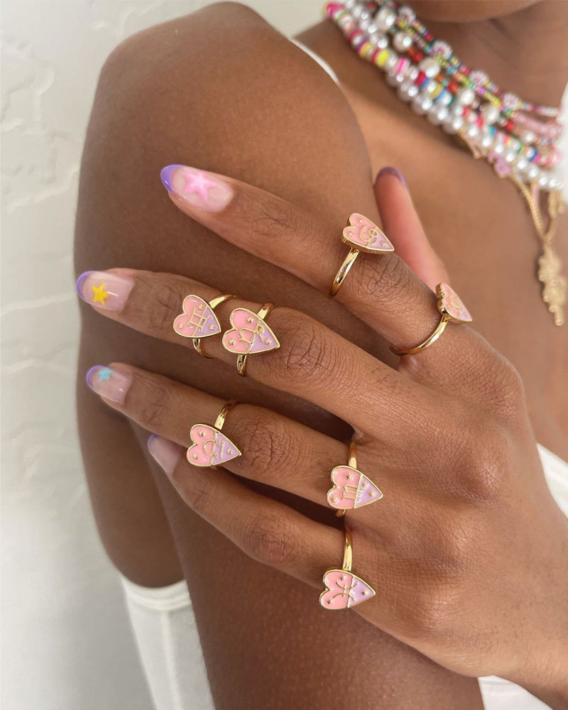 1PCS Constellation Pattern Heart Shape Open Ring, Gold