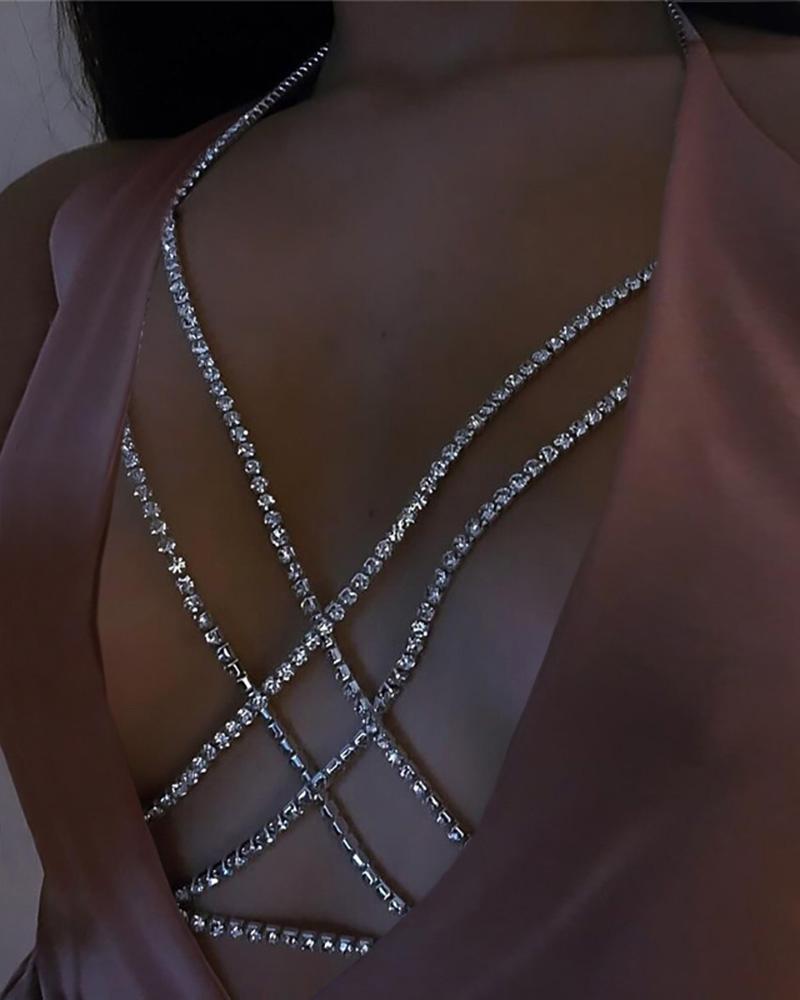 1PCS Criss Cross Rhinestone Decor Body Chain, Silver