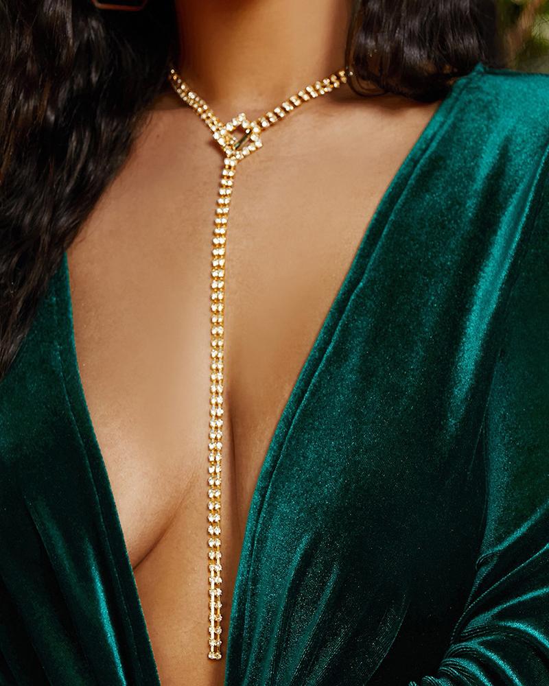 1PCS Geometric Pattern Rhinestone Choker Necklace, Gold